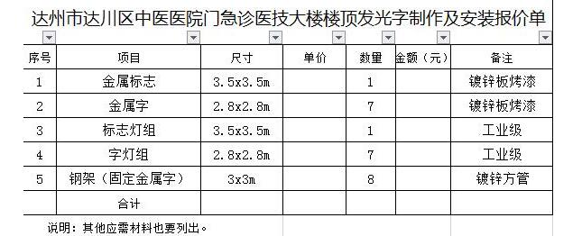 本比选项目为(达川区中医医院门急诊医技大楼楼顶发光字安装制作项目),比选人为达川区中医医院。项目资金由比选人自筹,资金已落实。