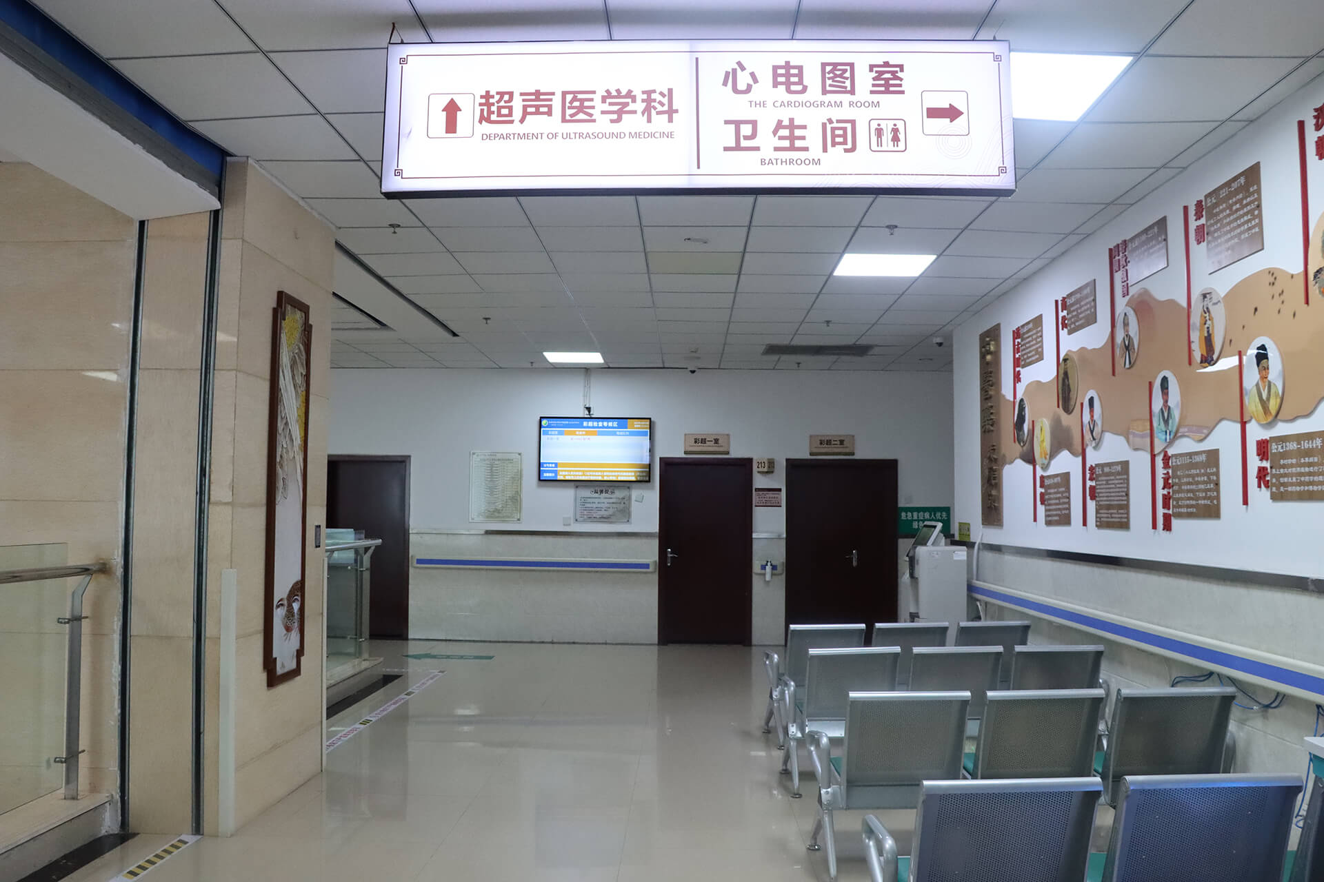 超声科拥有国内外先进的机型,如飞利浦、阿洛卡、迈瑞公司等中高端彩超机,配备有腹部、浅表、心脏、腔内、容积等探头,能完成各种器官超声诊断。